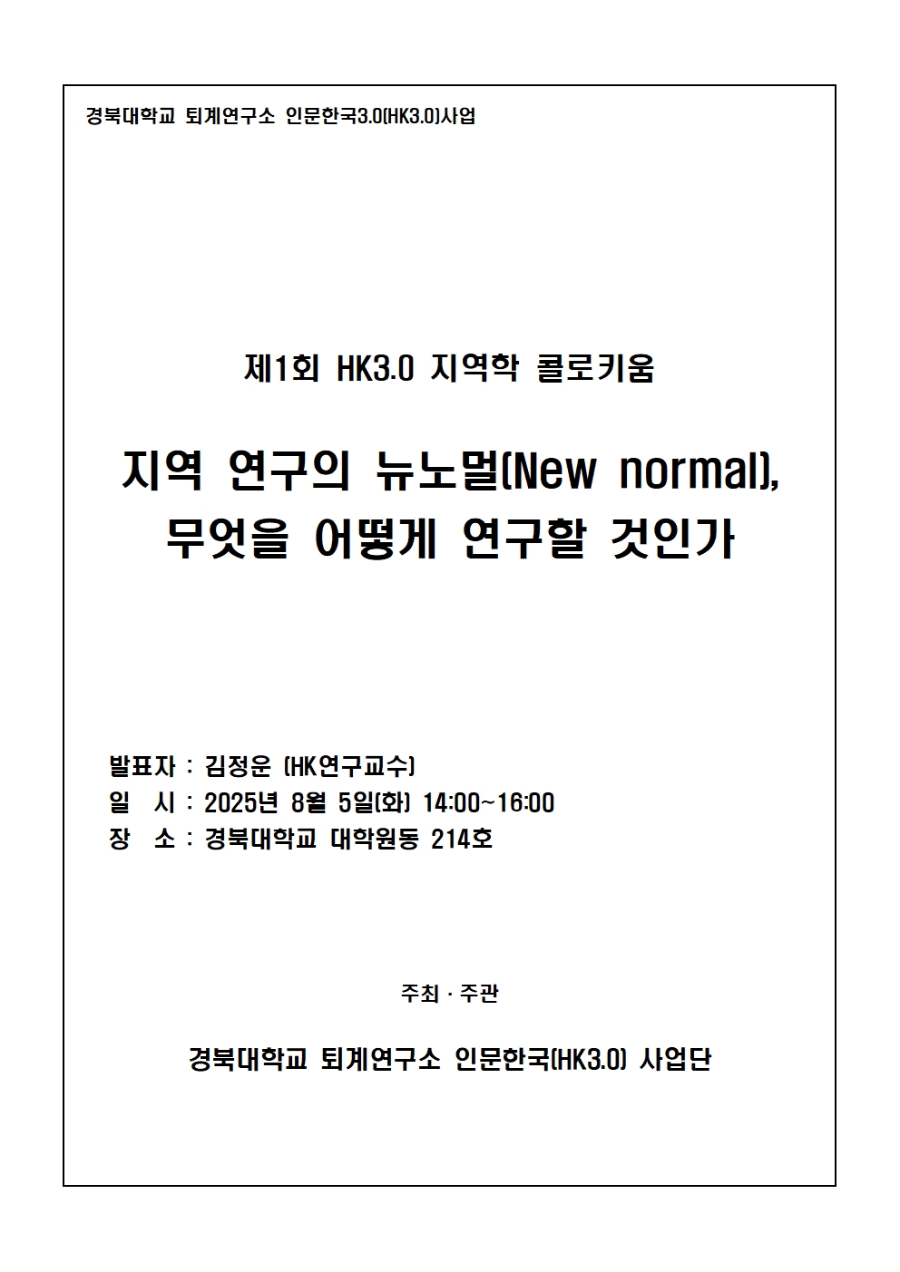 제1회 HK3.0 지역학 콜로키움 - 지역 연구의 뉴노멀(New normal), 무엇을 어떻게 연구할 것인가